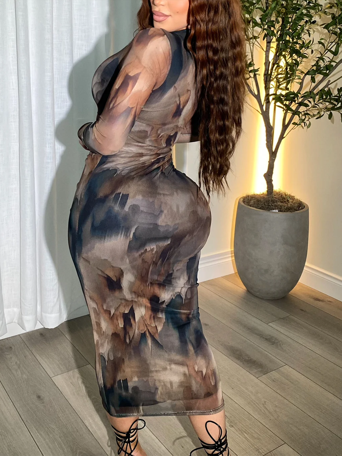Embrace the intersection of art and fashion in this stunningly unique midi dress. designed to transform you into a walking masterpiece. Crafted for the sophisticated woman who appreciates detail and daring. this dress combines artistic flair with irresistible comfort.