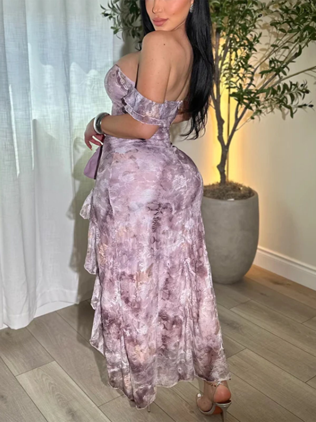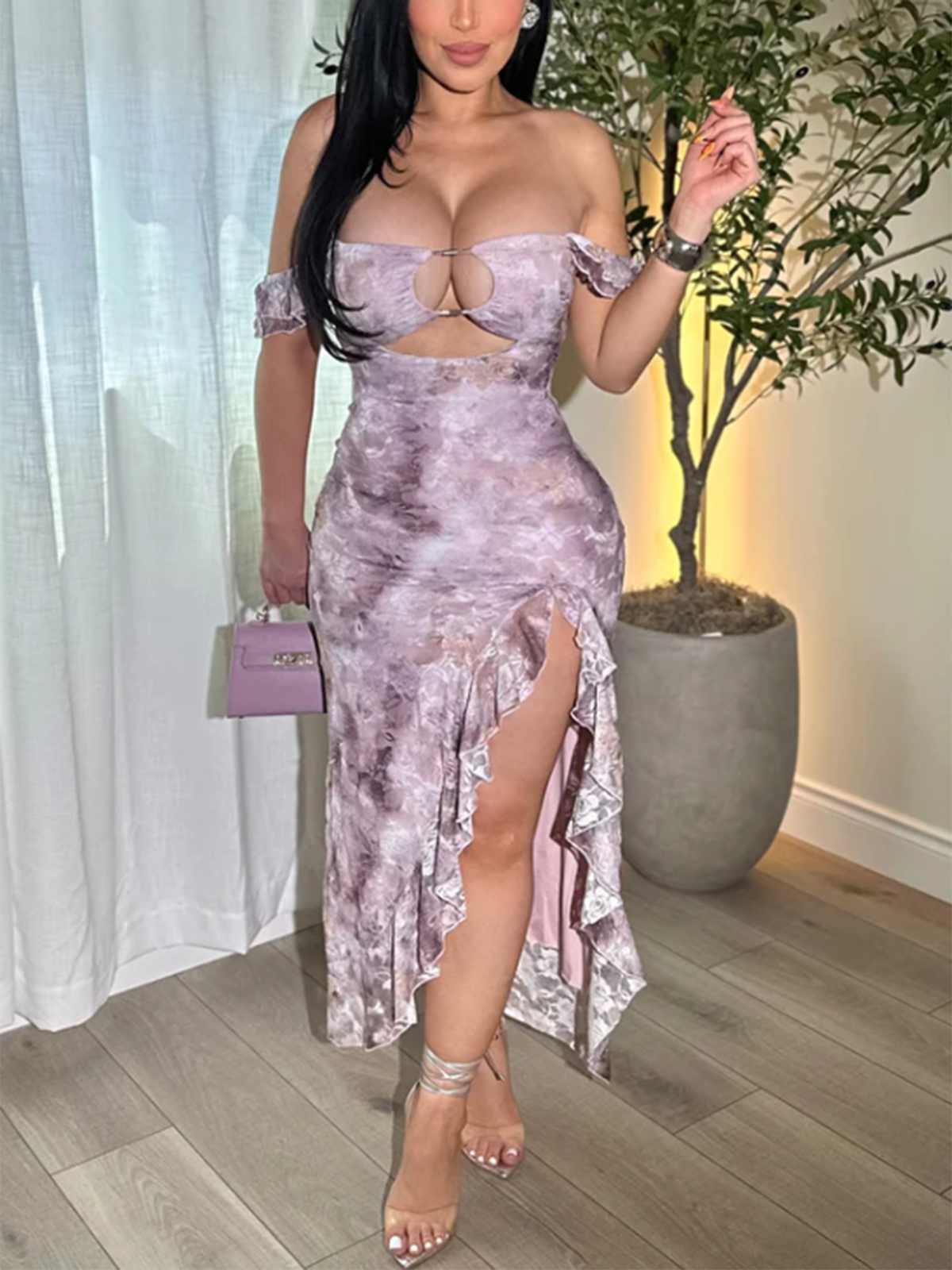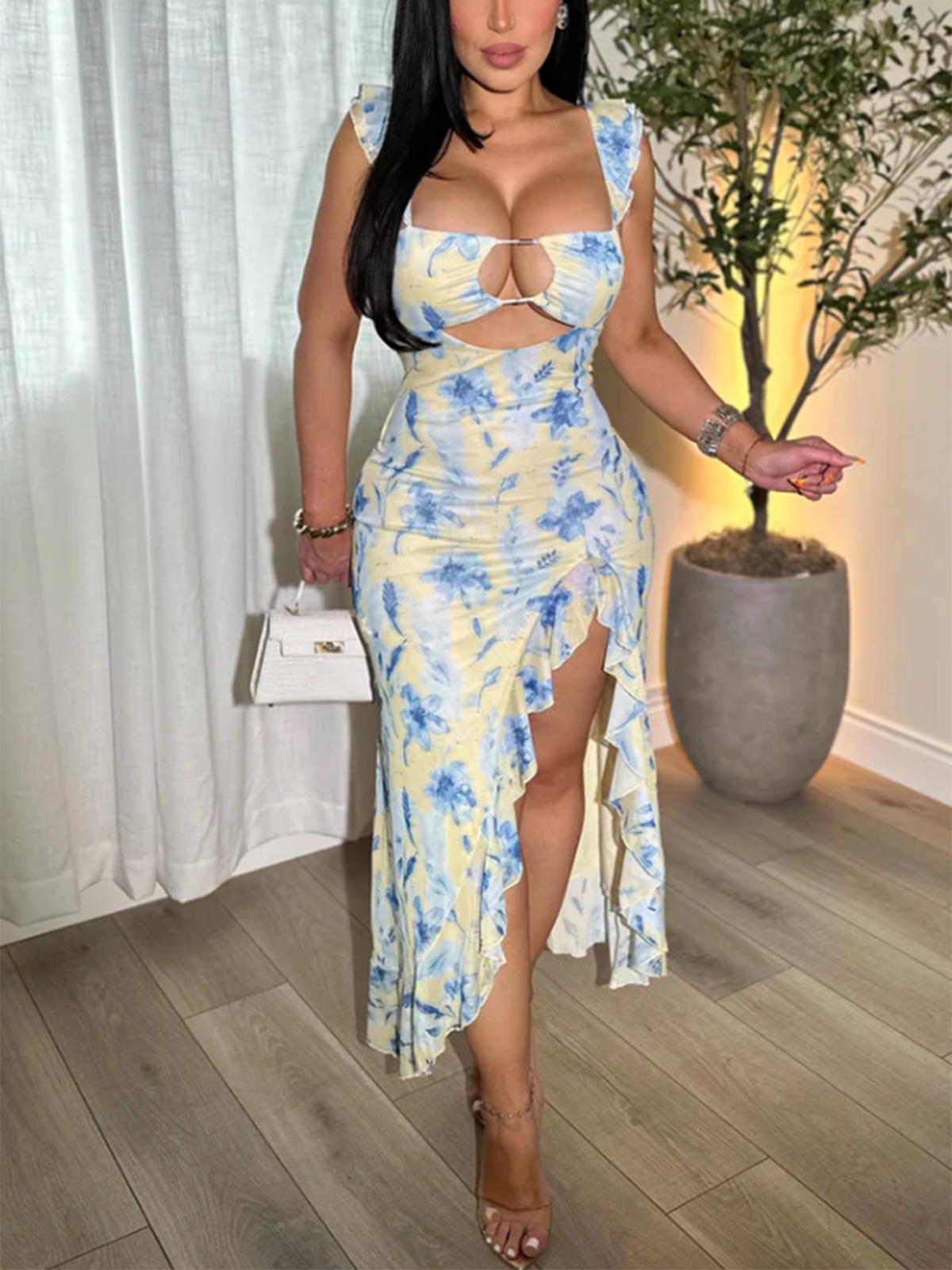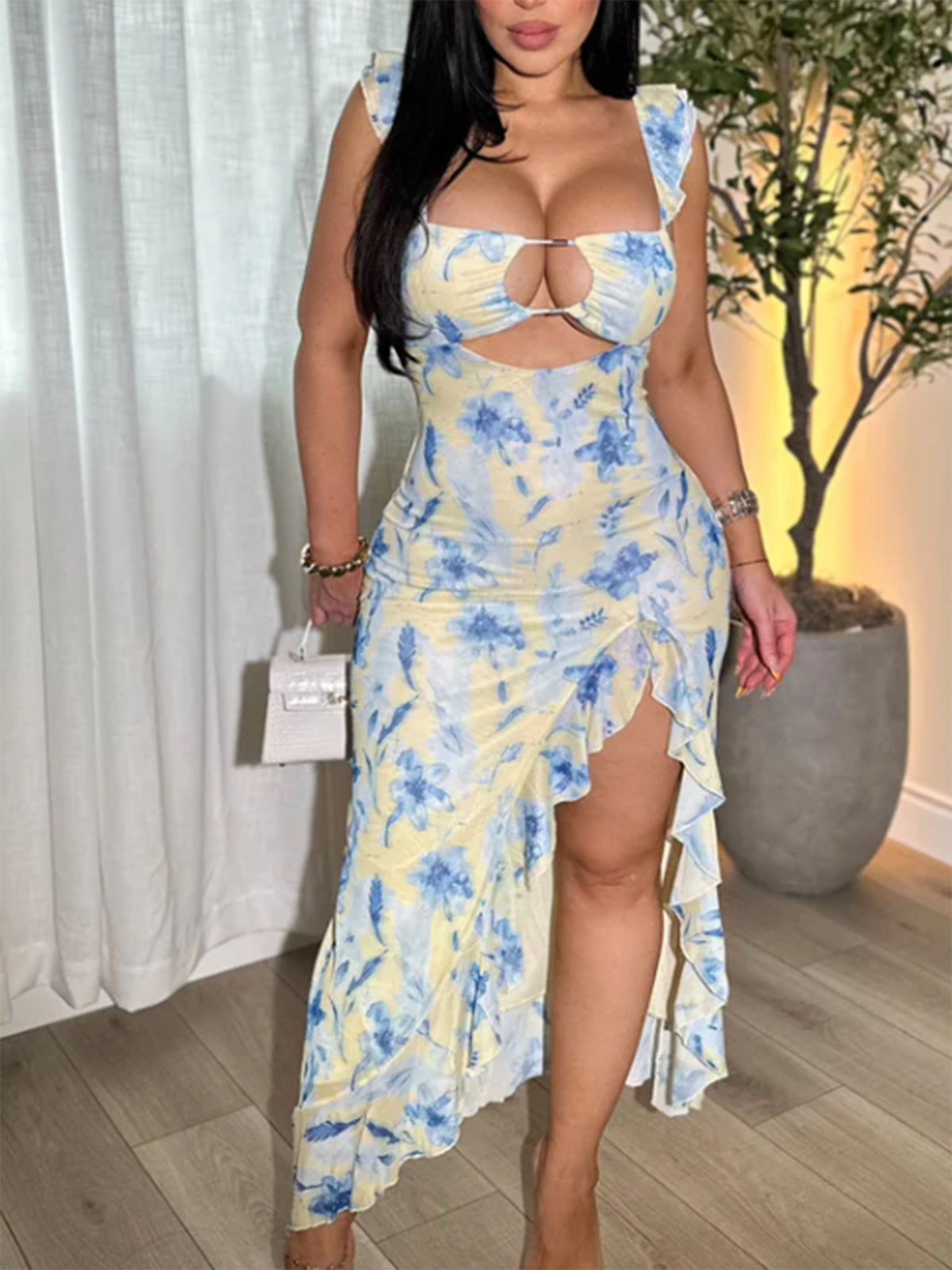 • Hi-Lo Ruffle Slit – Flirty front slit with cascading ruffles for leg-revealing drama
