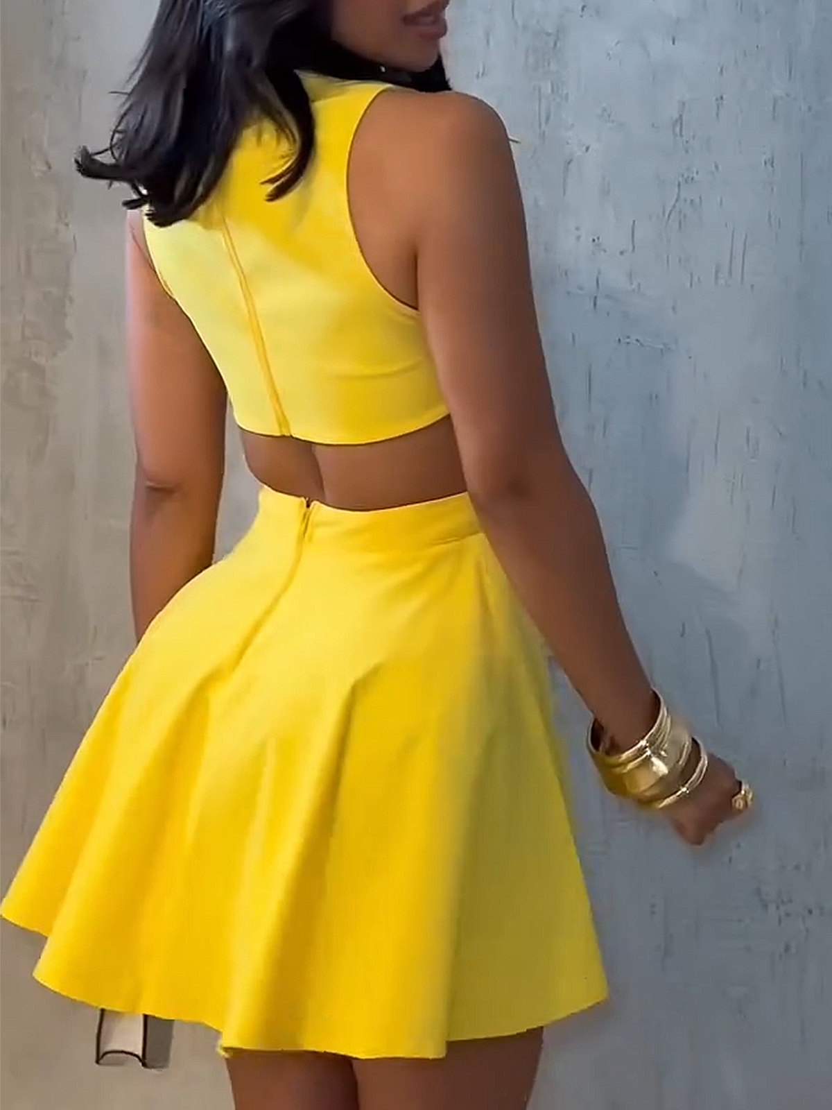Be the first to review “Ladies V-neck Metal Button Sleeveless Dress”