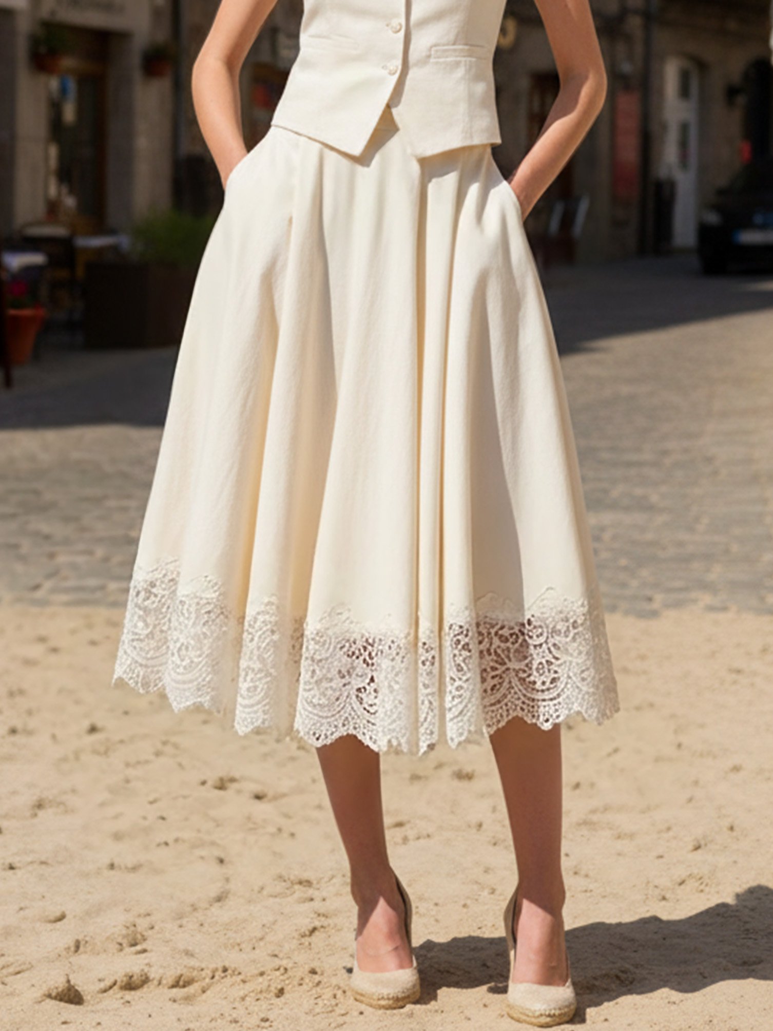 Linen Vest, Sleeveless, Shawl Collar, Plain, Button Design, Vacation, Vintage, White